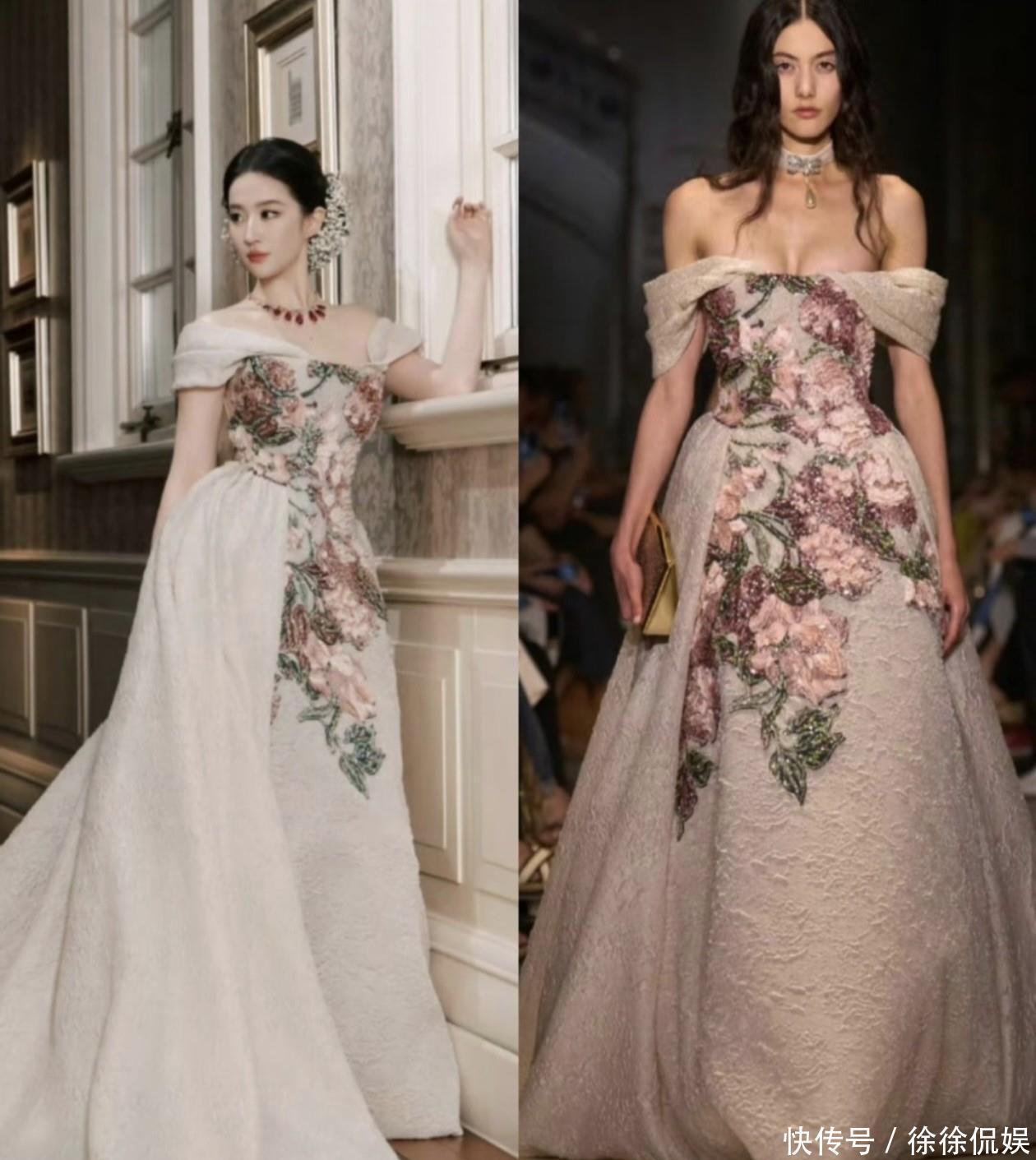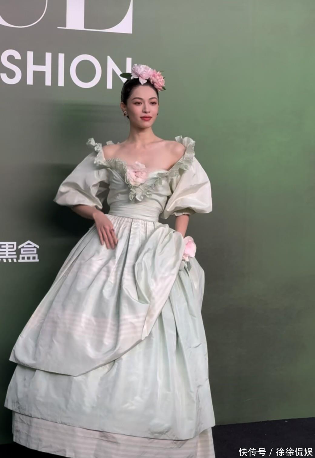 钟楚曦,古董礼服搭配花朵头饰,美得像从油画里走出来的!